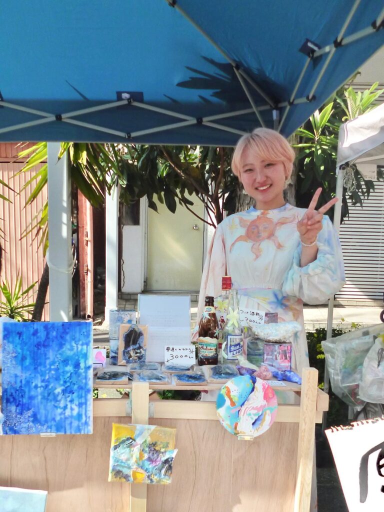 平面だけでなく立体にも取り組み、抽象的な表現を中心に少しずつ幅を広げています。展示、マルシェ出店、ライブペイントなどをアルバイトと並行しながら続けてきました。制作では、自分の考えを確かめながら手法を試す姿勢と、自分が描きたいものに素直であることを大切にしています。